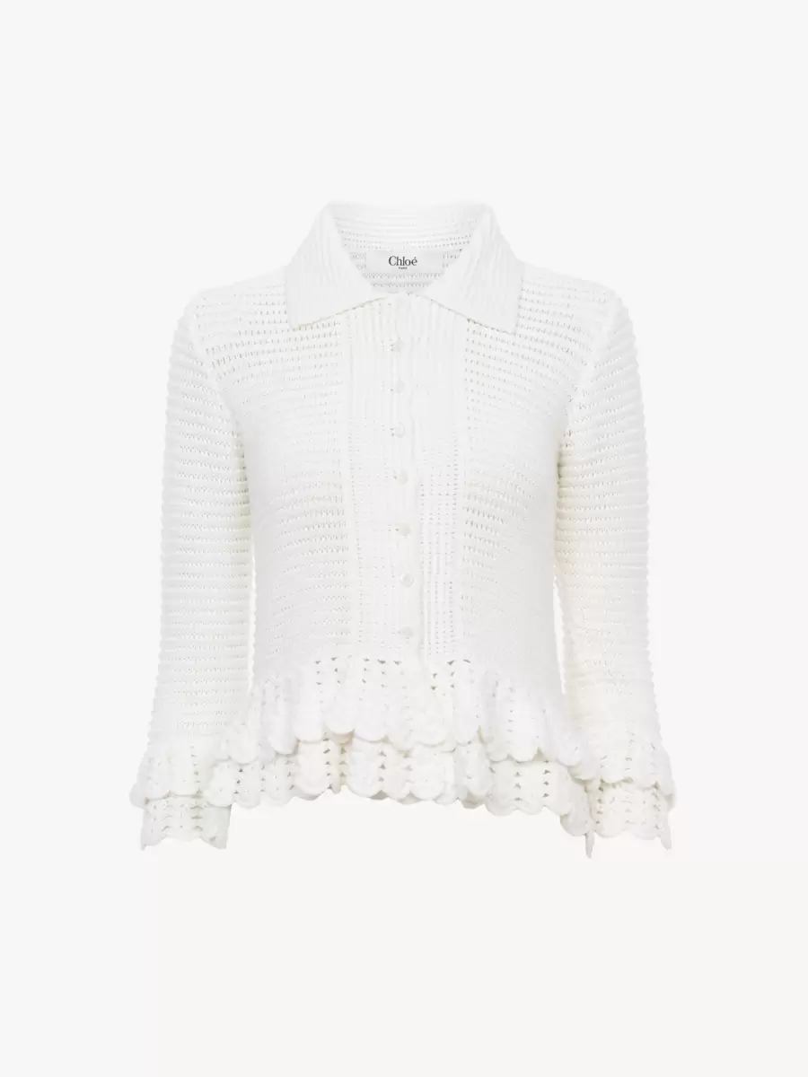 Fitted ruffled cardigan in crochet knit