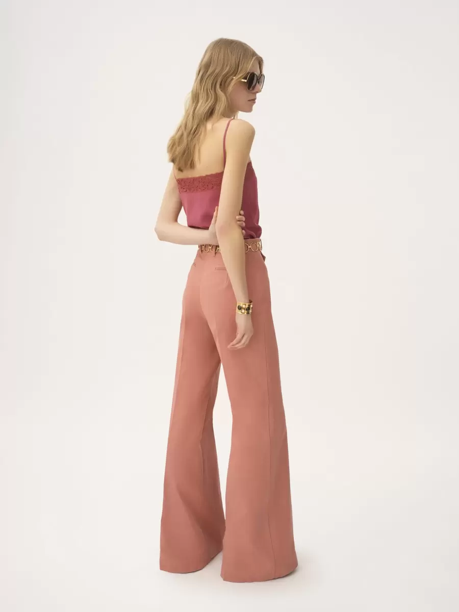 High-rise flared pants in garment-dyed organic cotton canvas, detailed with a mini flap pocket at the hip.