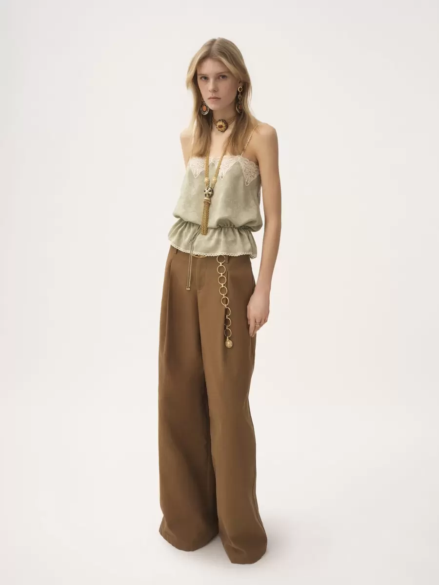High-rise wide-leg pants in garment-dyed cotton canvas, featuring front pleats and engraved horn buttons.