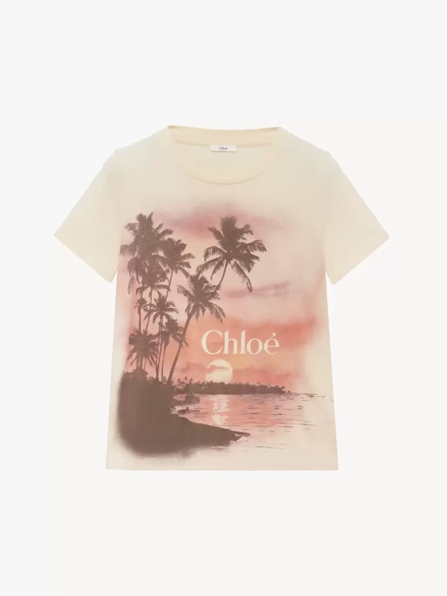 Crew-neck baby fit T-shirt in organic cotton jersey, featuring a Chloé logo and sunset print.