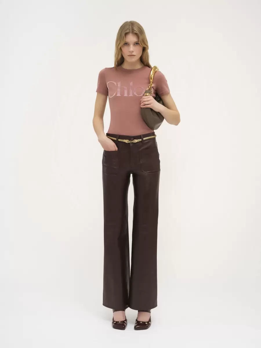 Crew-neck fitted T-shirt in cotton jersey with matte velvet Chloé logo at the front.