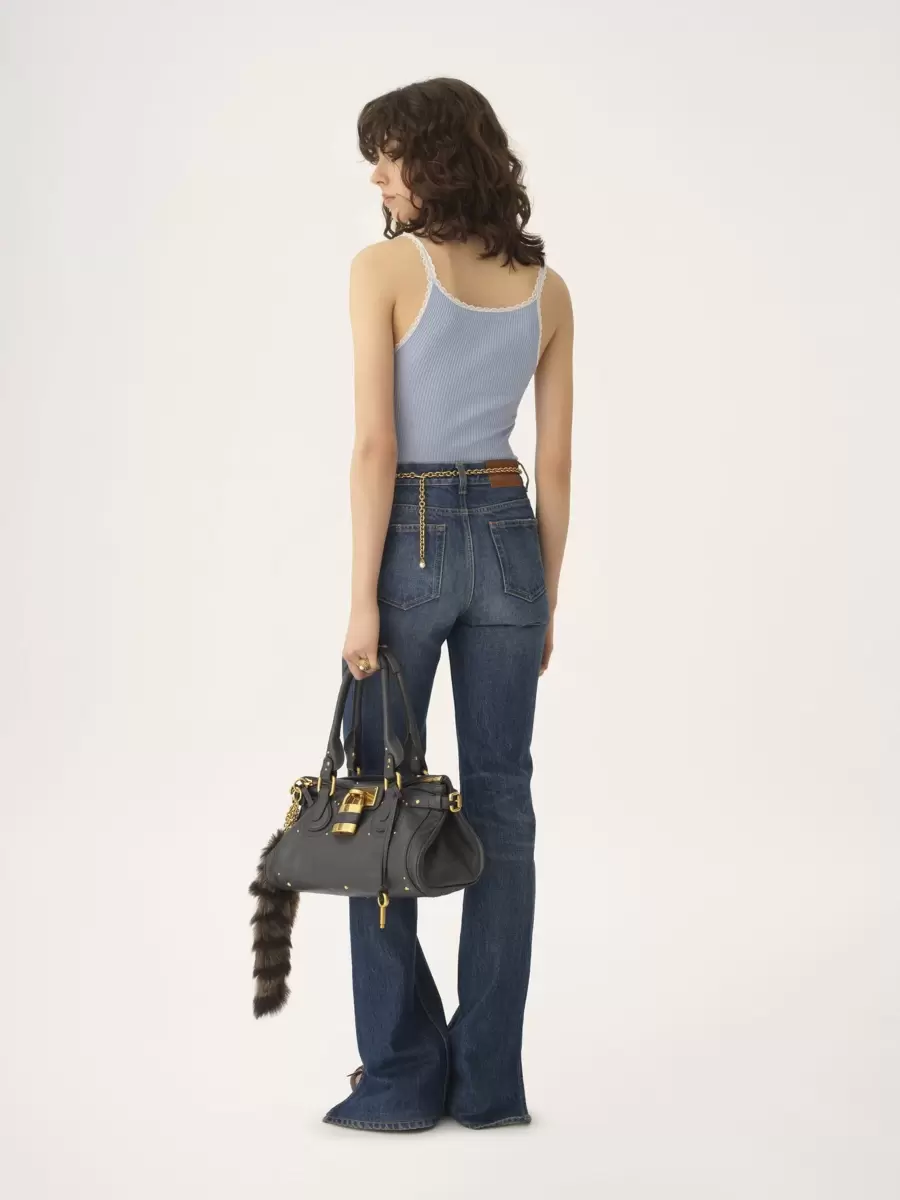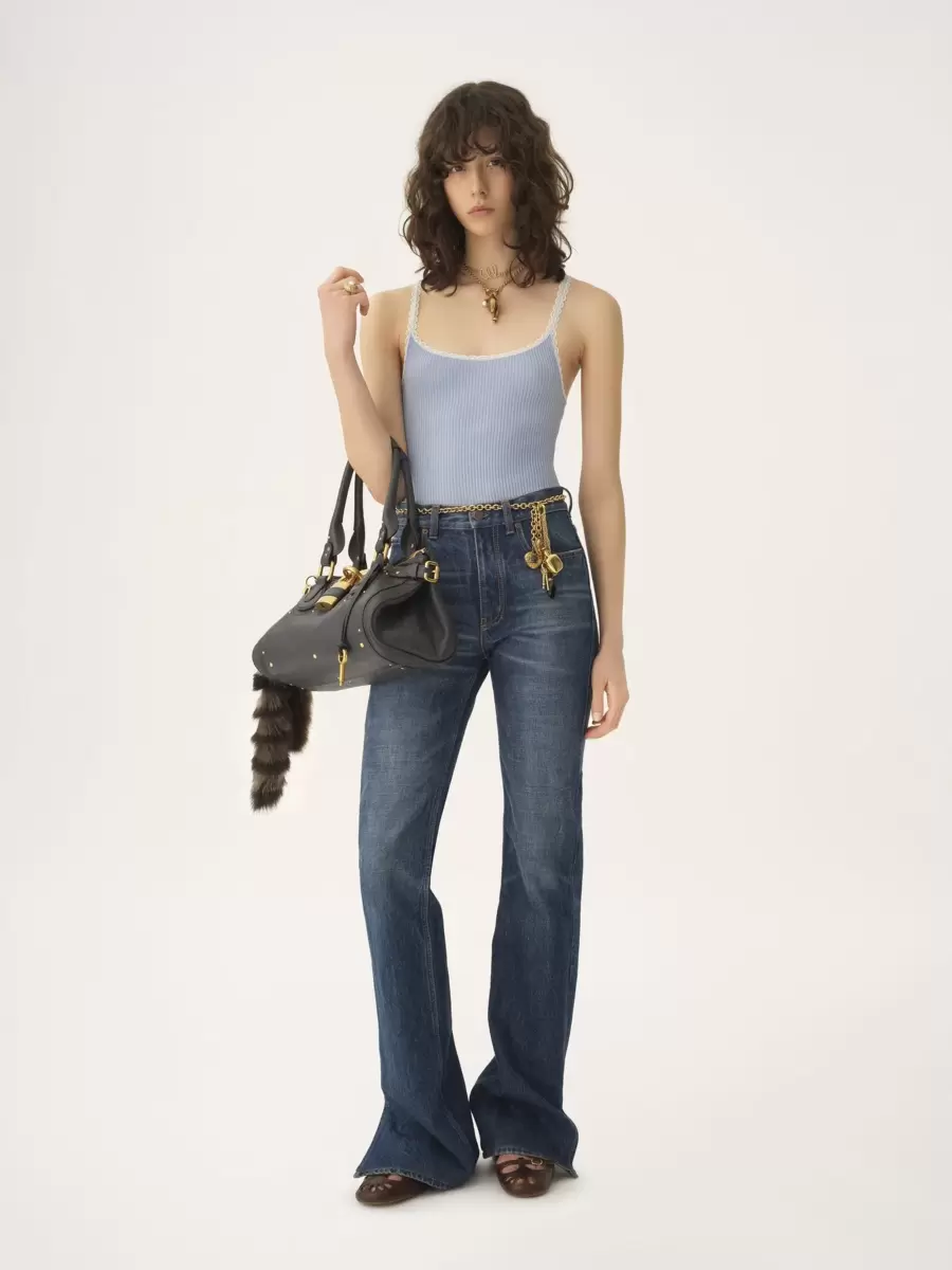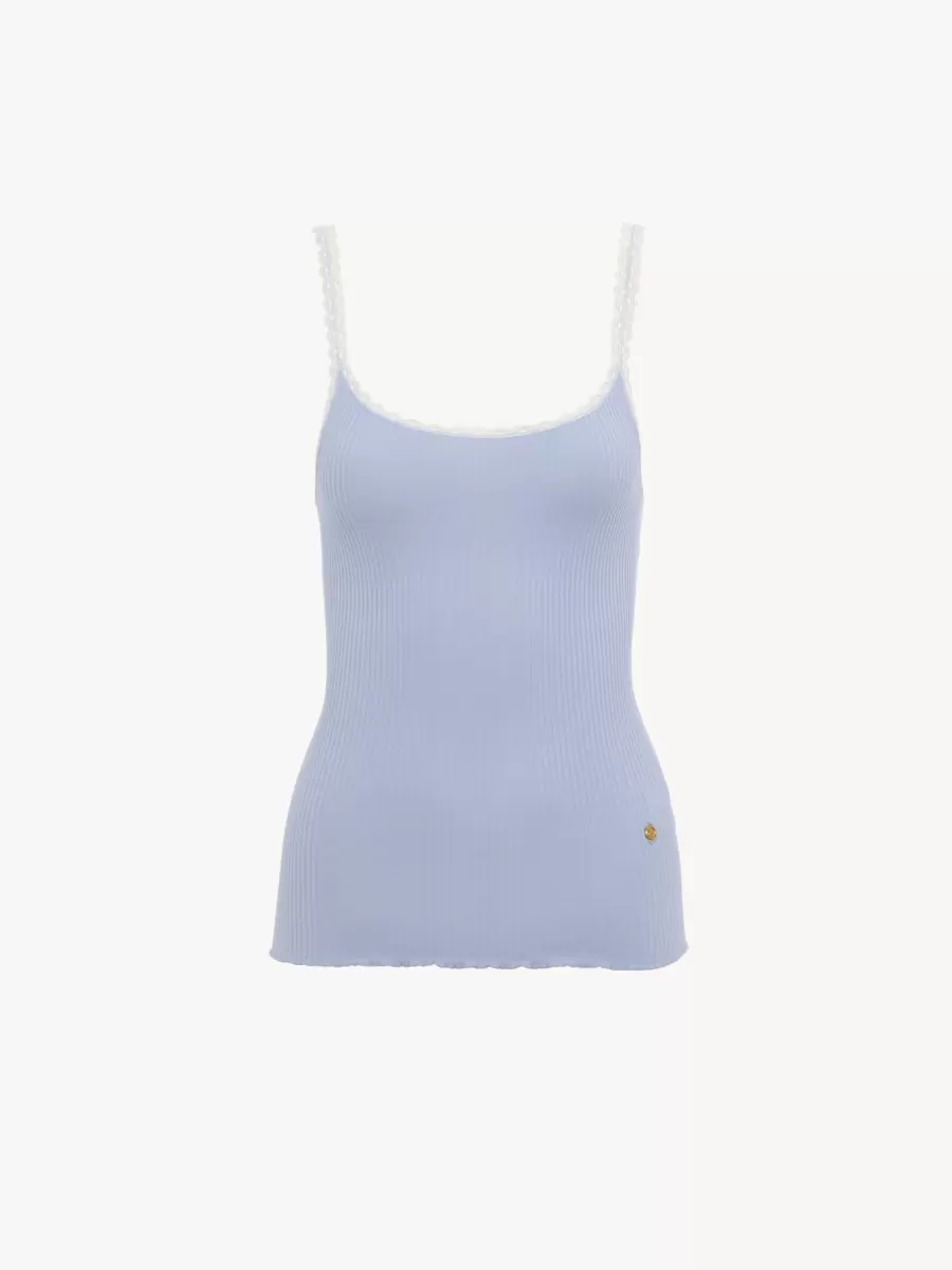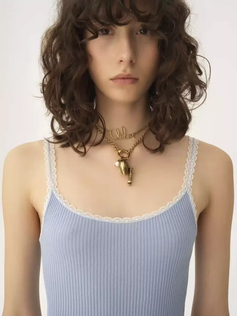 Fitted tank top in tubular cotton with a scalloped lace trim and a gold-tone medal at the hip.