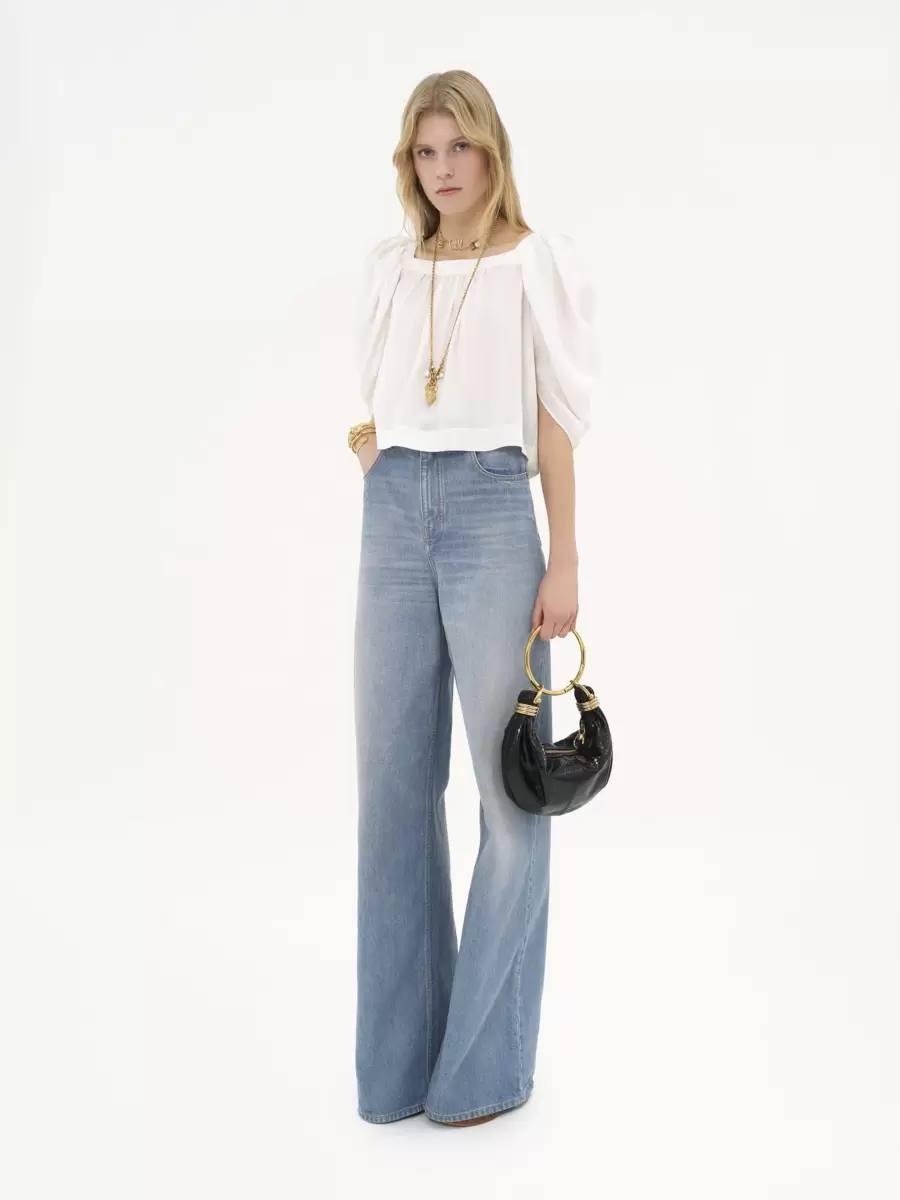 Be the first to review “Puff-sleeve pleated top in silk poplin”