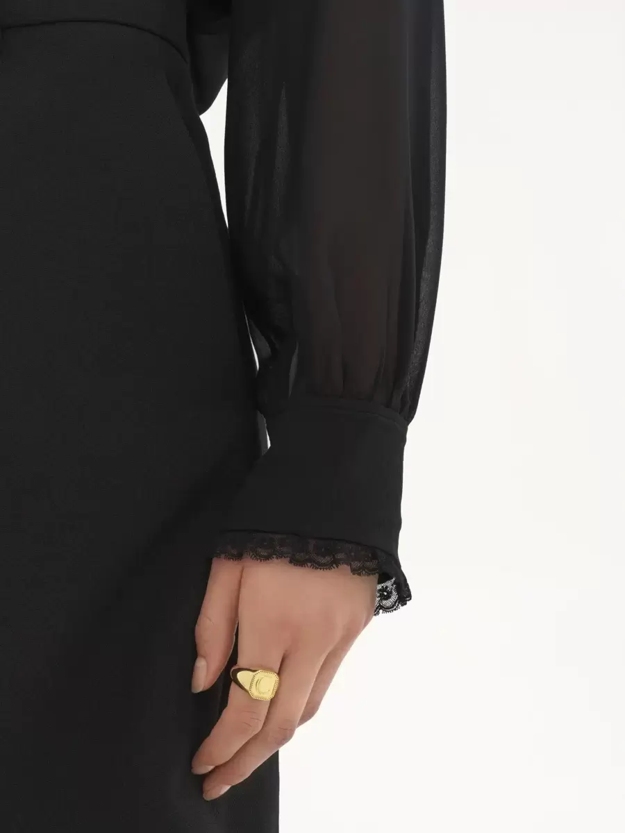 – Ruffled silk blouse