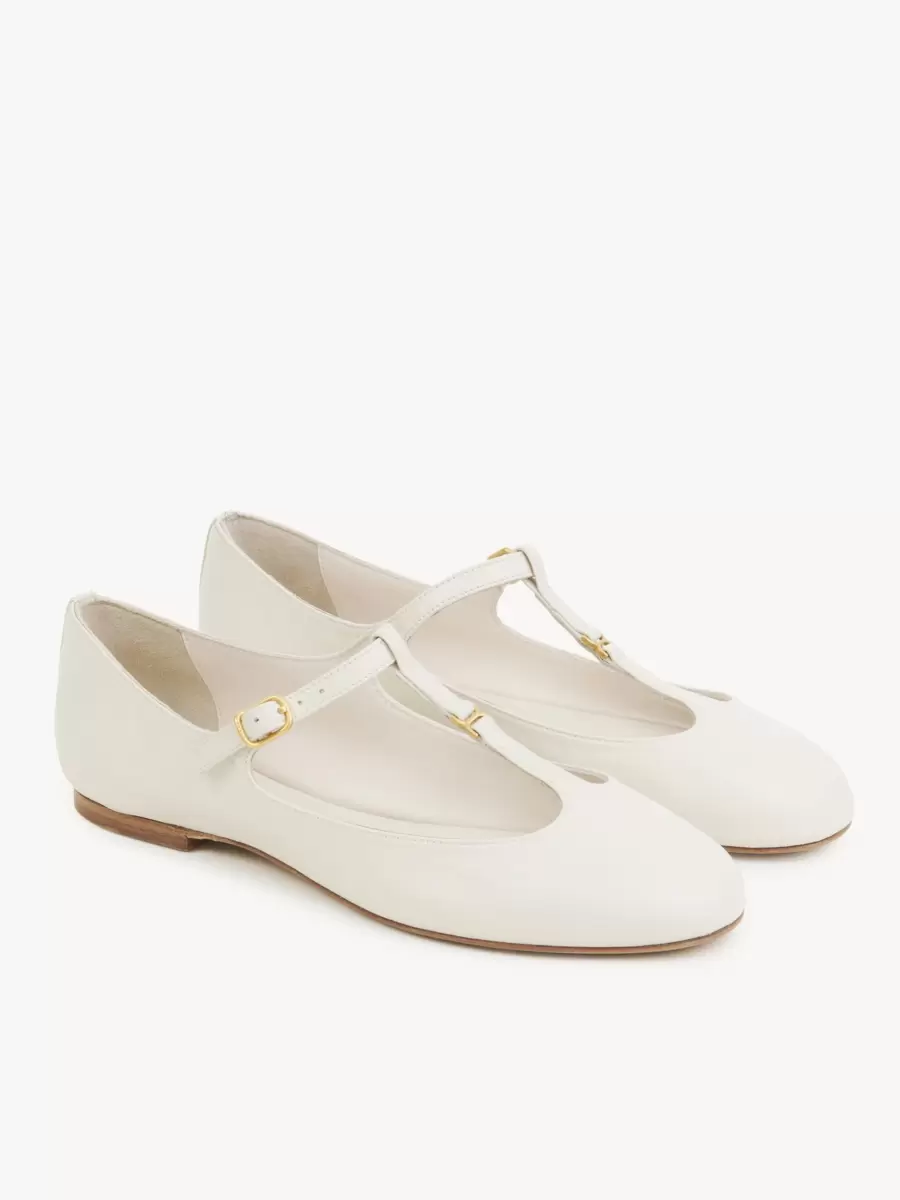 Crafted from nappa goatskin, this revisited Marcie ballerina pairs a Mary Jane silhouette with an almond toe shape for a Parisian attitude.