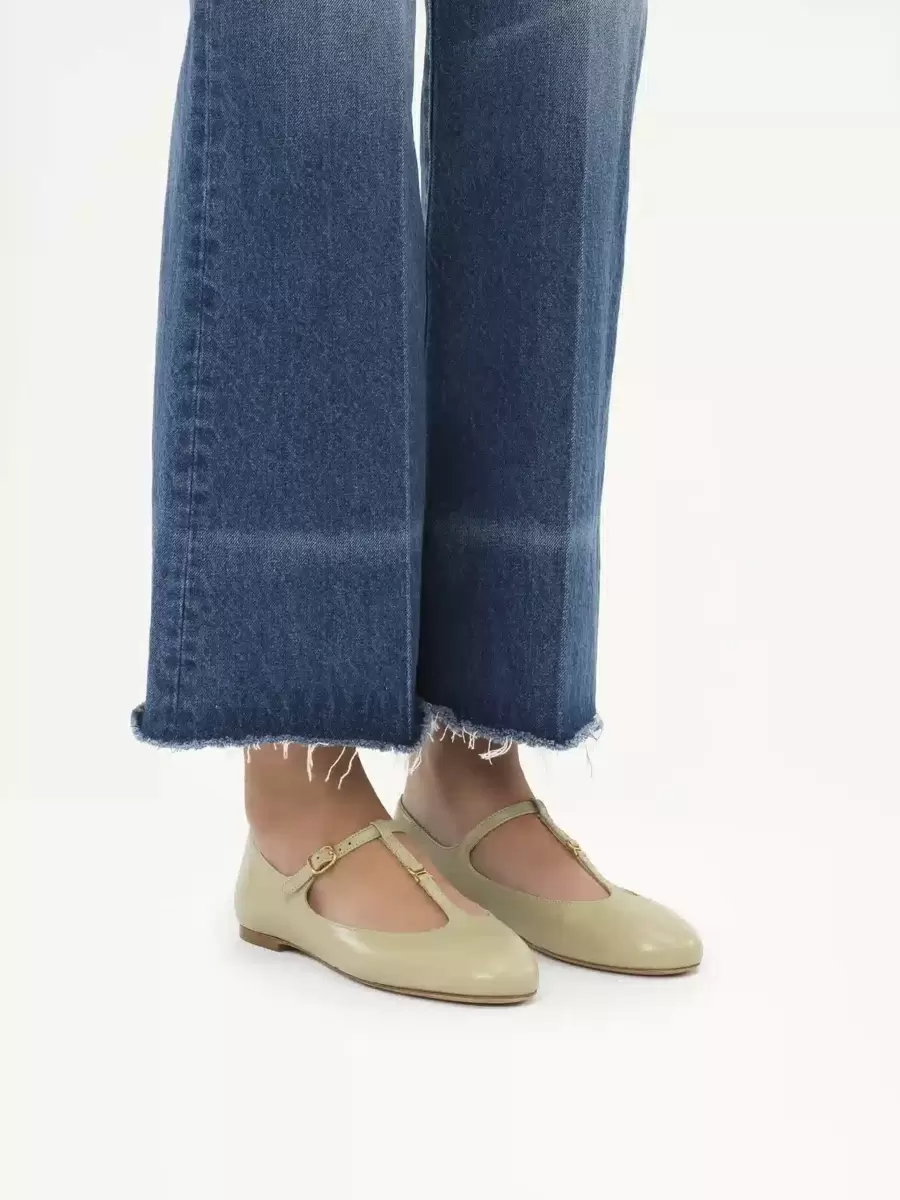 Crafted from semi-shiny lambskin, these revisited Marcie ballerinas pair a Mary Jane silhouette with an almond toe shape.