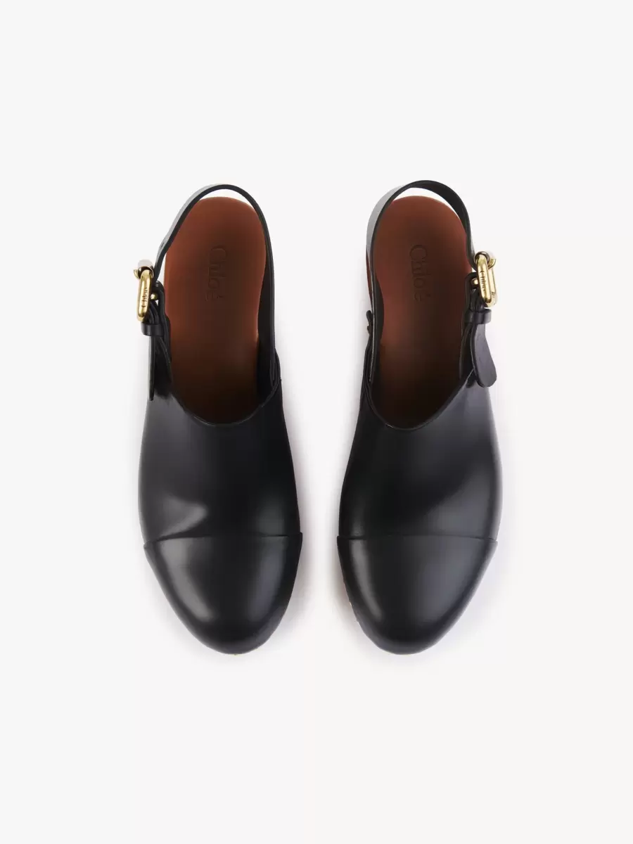 Gold-tone studs and a Chloé-branded plate add contrasting hardware, while the Maison’s Paddington buckle finishes these wedge clogs.