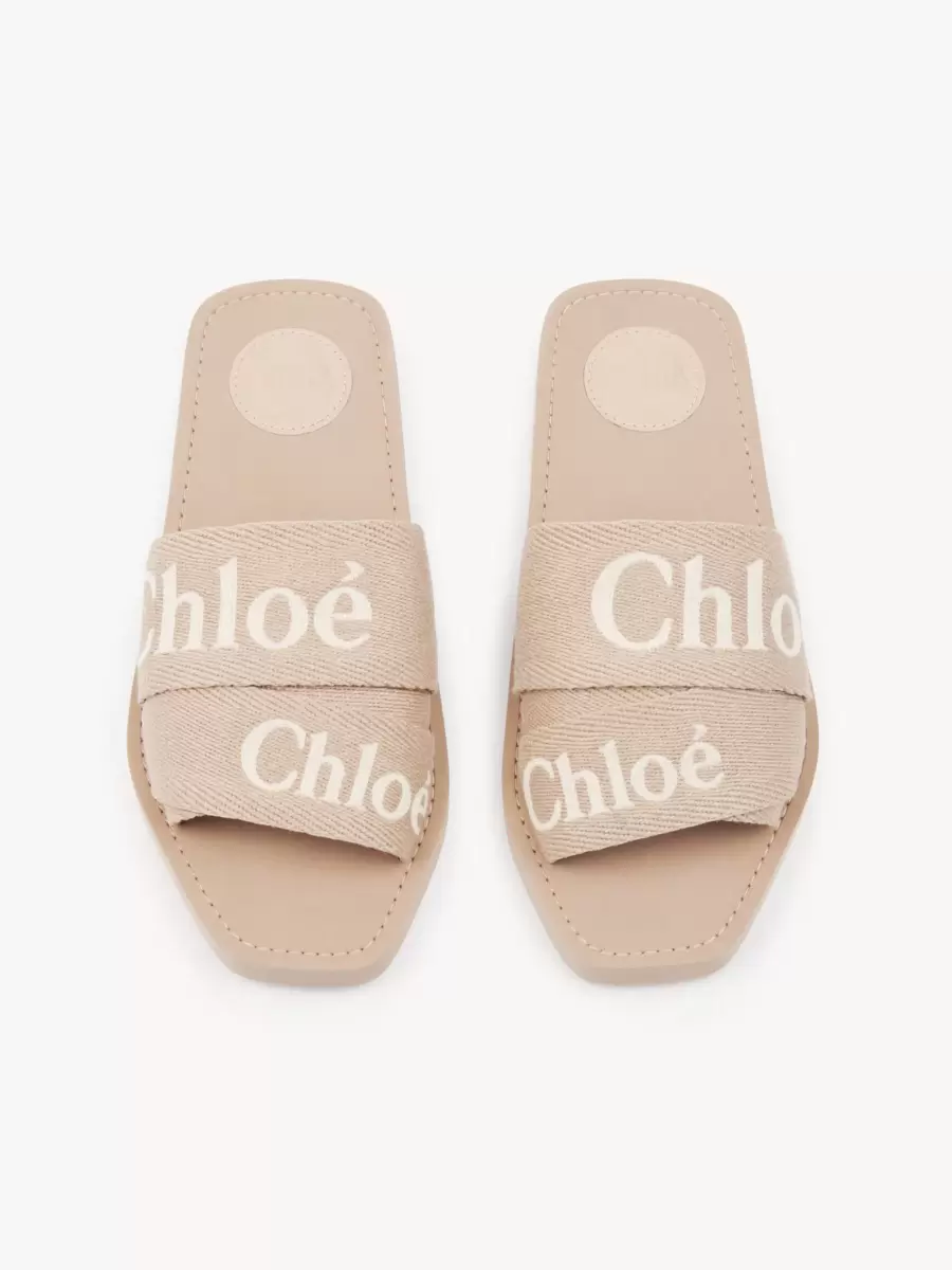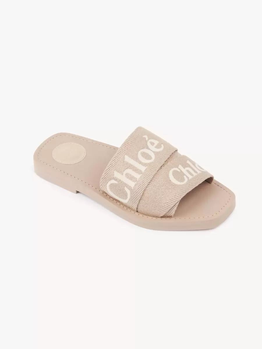 These Woody mules are crafted from different-sized ribbons in lower-impact linen, finished with contrast Chloé logo embroidery.