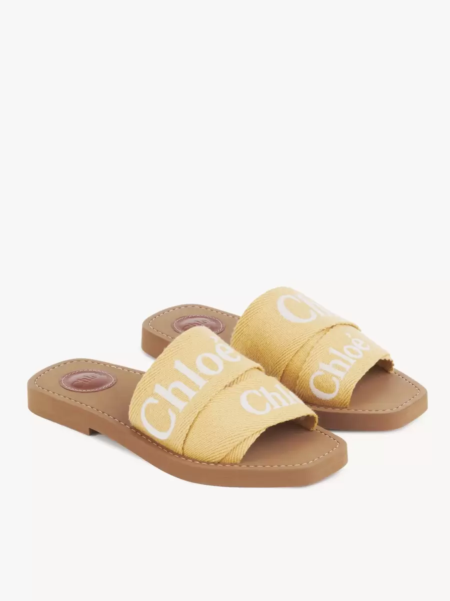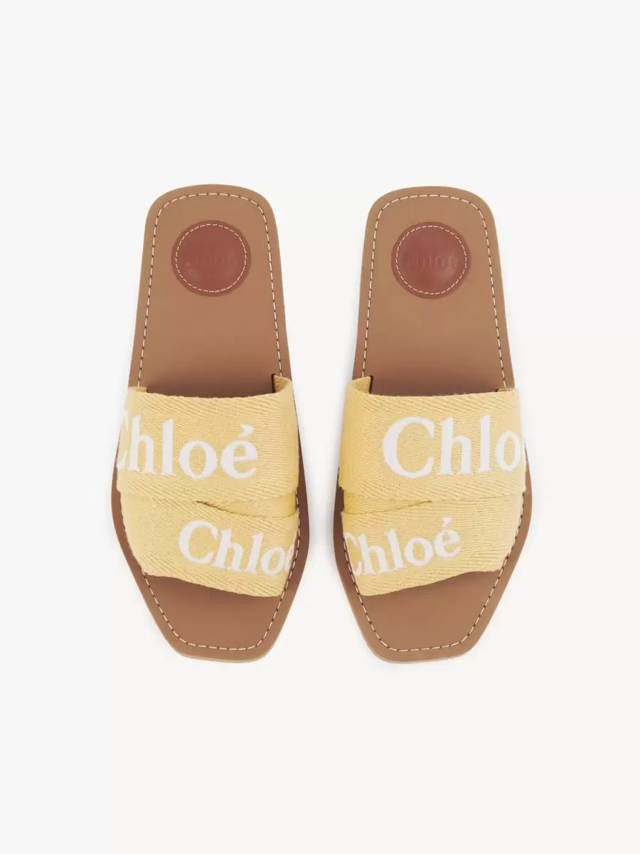 These Woody mules are crafted from different-sized ribbons in lower-impact linen, finished with contrast Chloé logo embroidery.