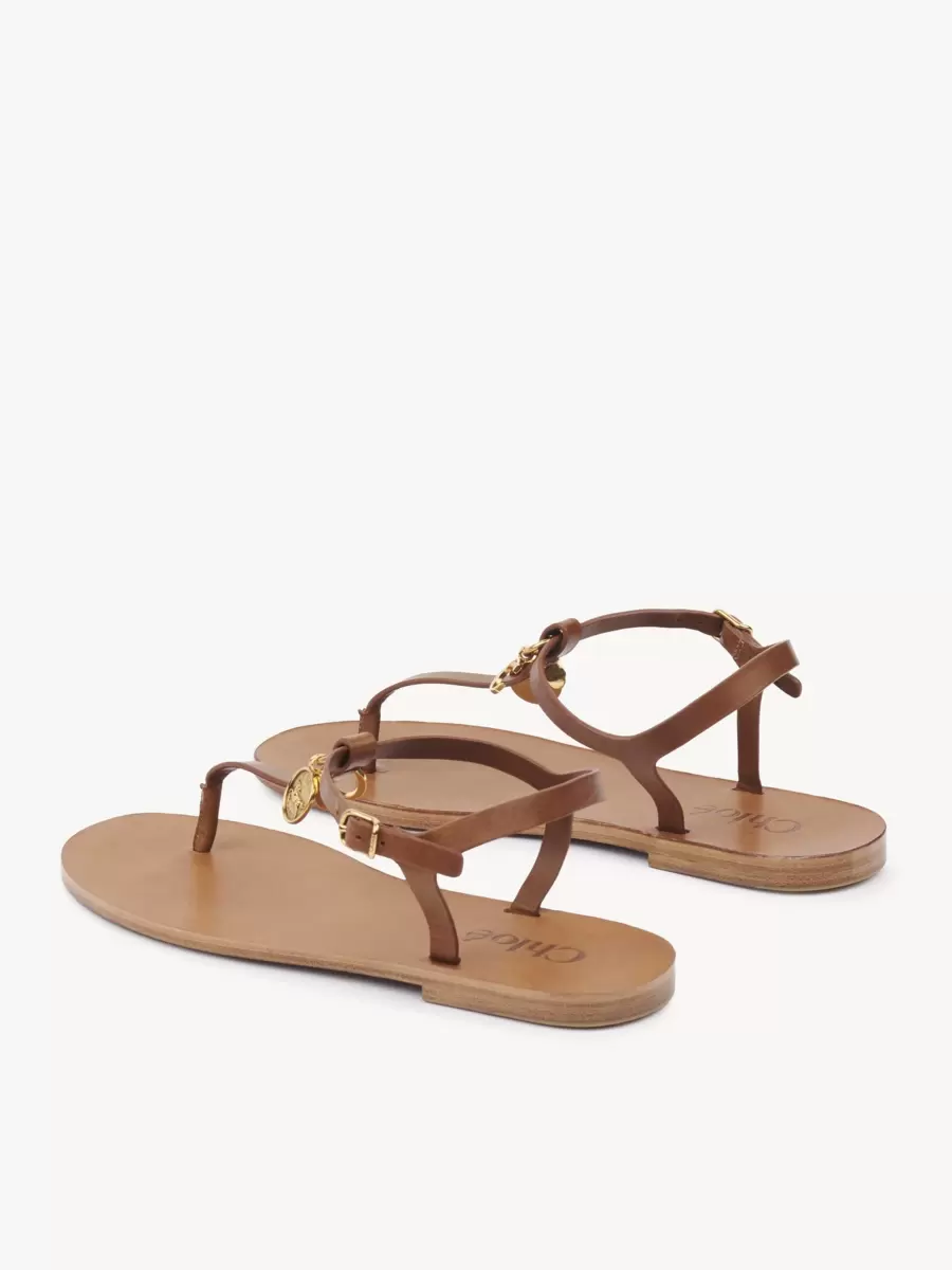 Crafted from shiny calfskin, the Chloé Charms flat sandals pair a delicate thong upper with an adjustable buckled ankle strap. The front is embellished with subtle gold-tone charms inspired by the Maison’s heritage.