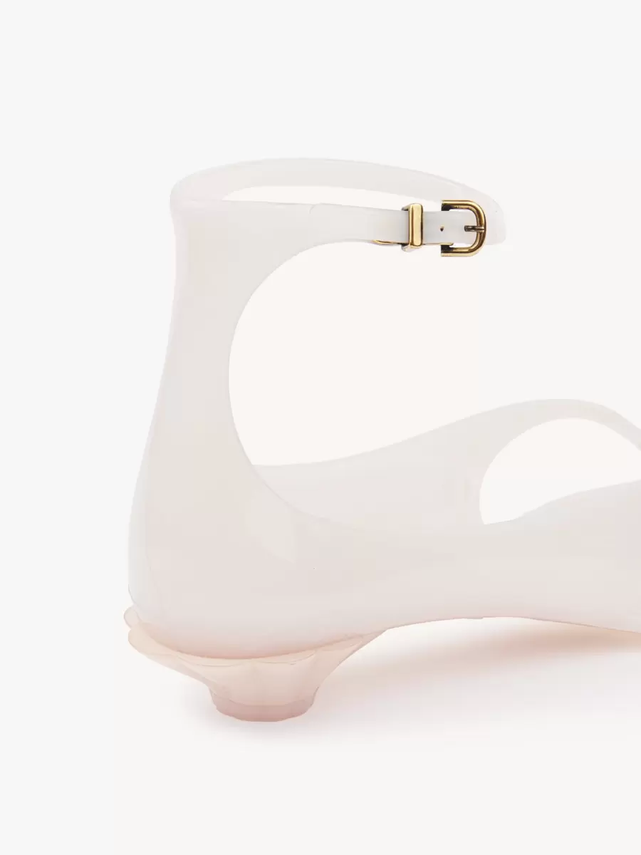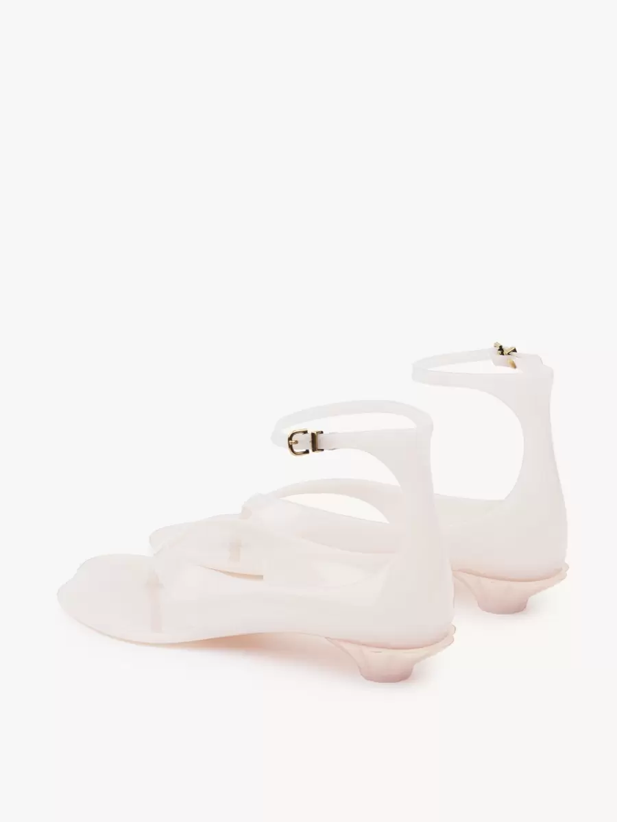 Crafted from transparent TPU, the Chloé Jelly sandals combine a thong front with a distinctive wavy sole and a shell-shaped heel.