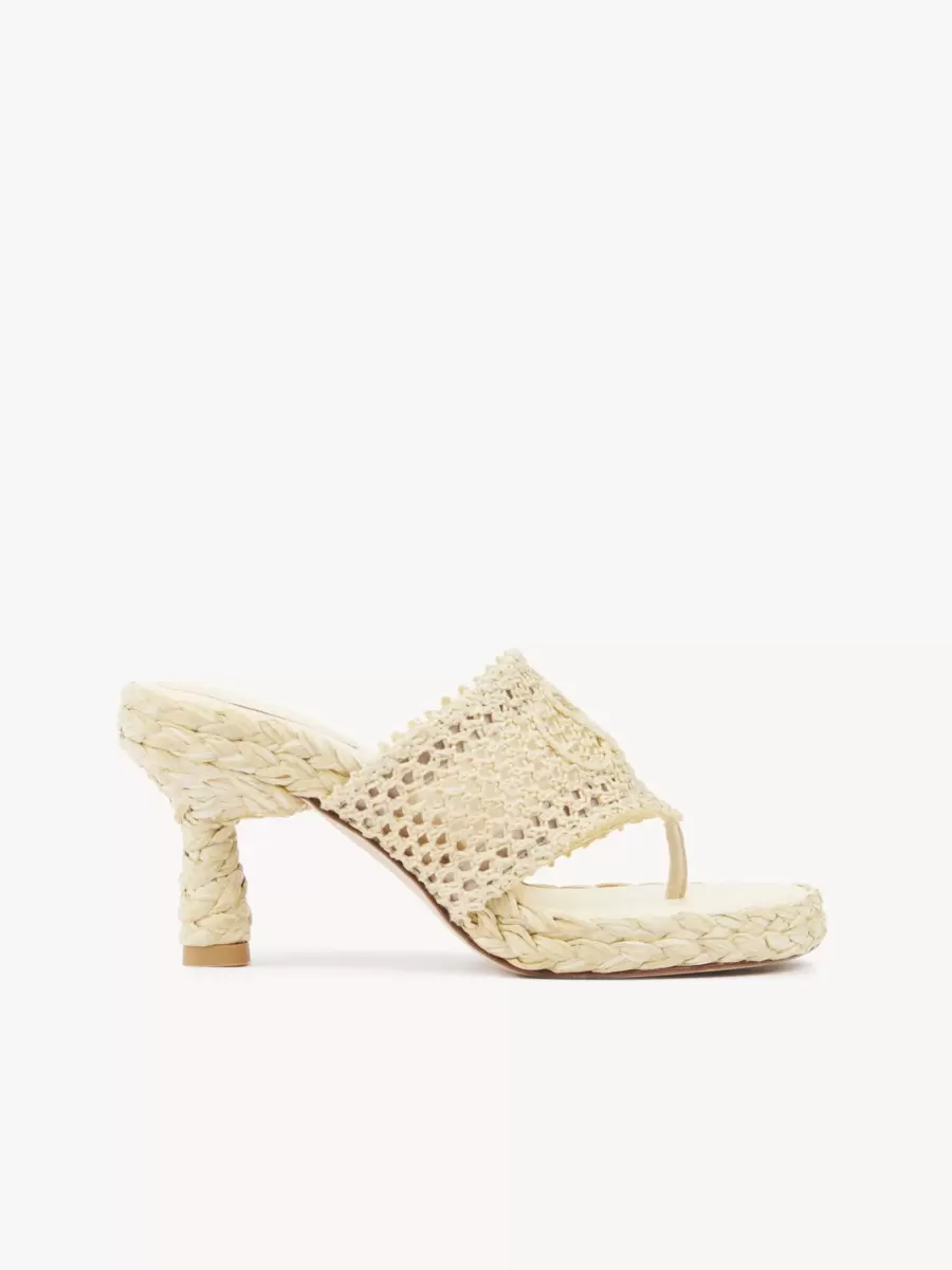 Inspired by the classic espadrille, these Isla heeled sandals feature a crochet-effect thong upper set on a cord structure with a curved heel. Tonal Chloé Iconic embroidery signs the upper.