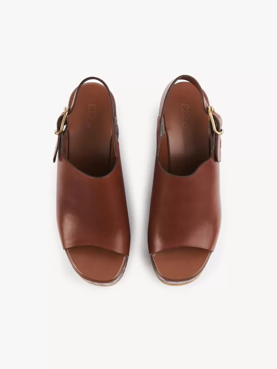 Reinterpreting the line’s wedge sandals in a lower version, these Maxime sandals feature a peep-toe upper in vegetable-tanned calfskin, set on a wood-effect wedge platform.