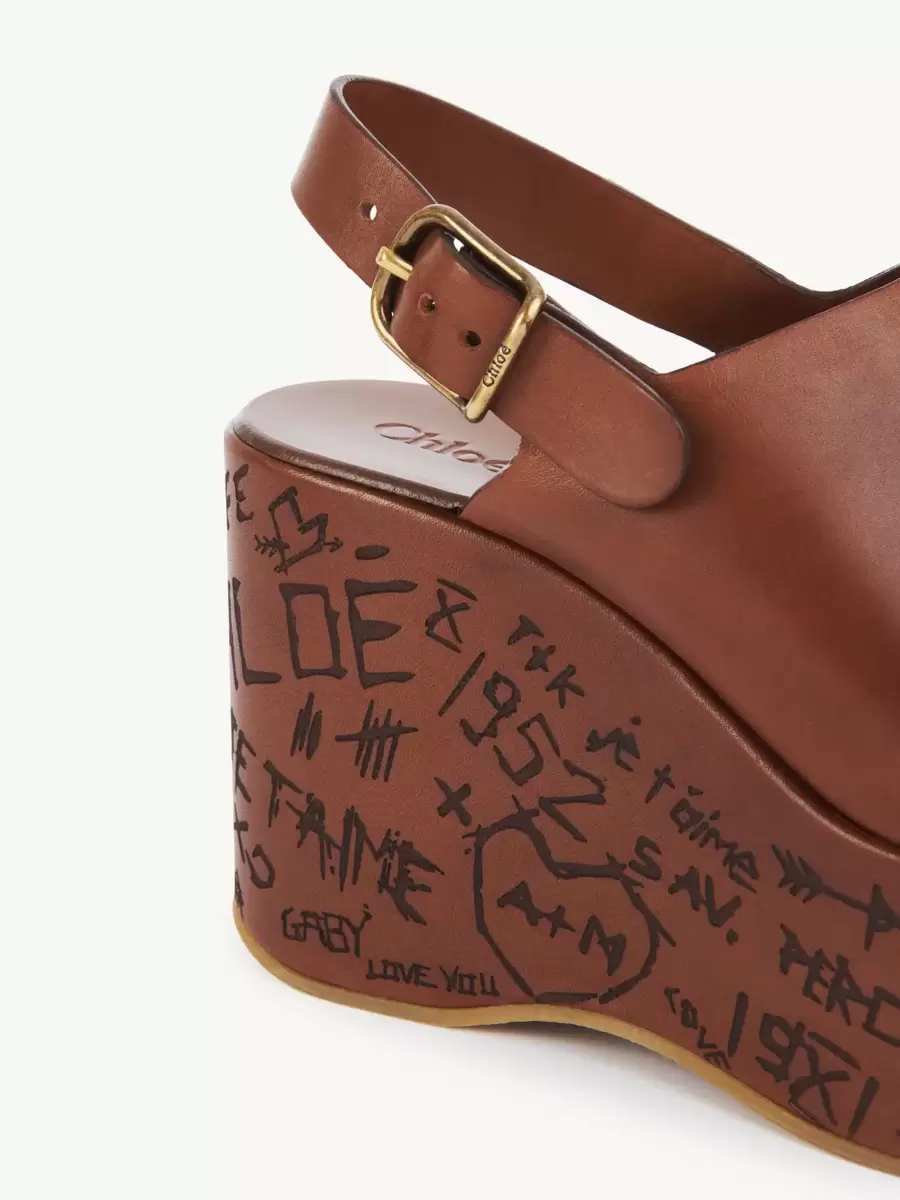 The sole references the Maison’s heritage like engraved love notes on trees. A Chloé-engraved buckle finishes these sandals for a comfortable fit.