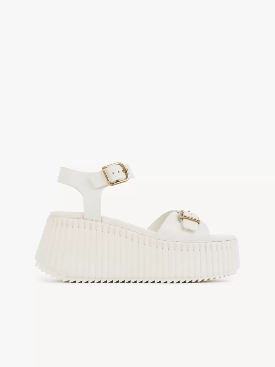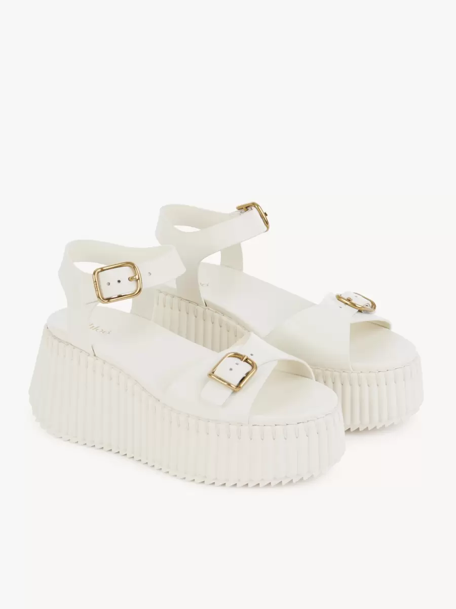 Crafted from vegetable-tanned cowhide, these hybrid Nama wedge sandals feature double straps finished with Chloé-engraved buckles. They are set on an iconic, lightweight and ultra-comfortable recycled platform, finished with immaculate blanket stitching which takes 4.5 hours to complete by hand.