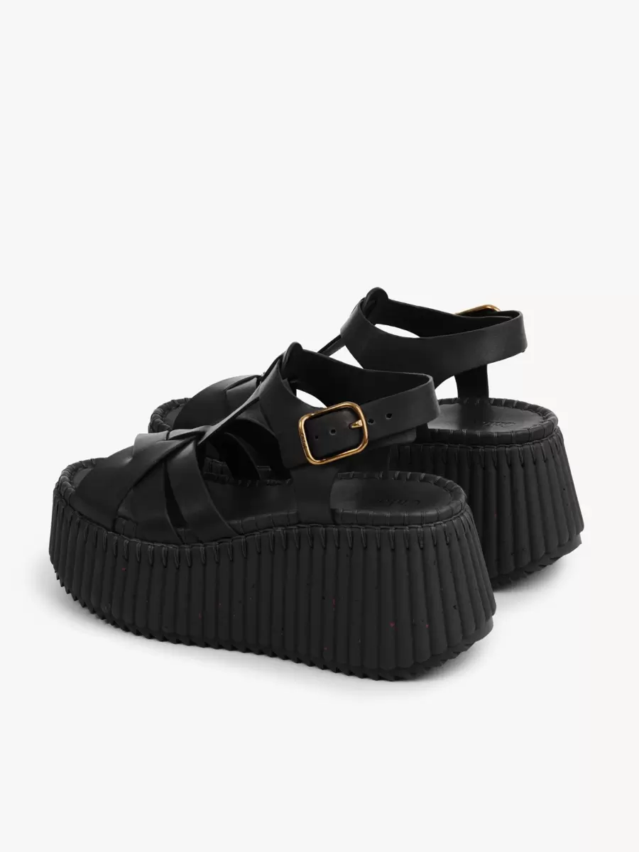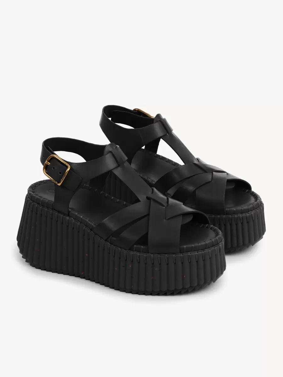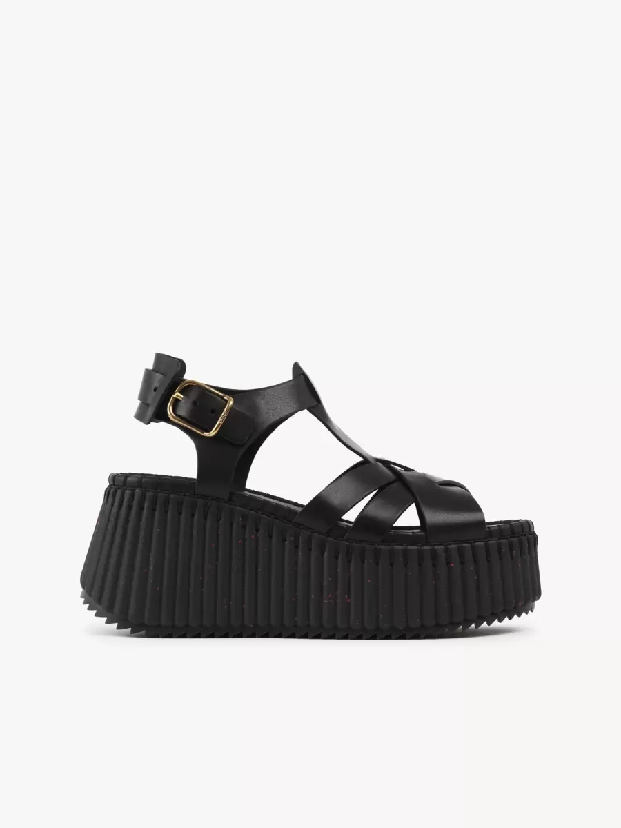 Set on a chunky ridged sole, the upper features interwoven straps combined with tonal stitching. These ultra-comfortable wedge platform sandals are finished with a Chloé-engraved gold-tone buckle for an adjustable fit.