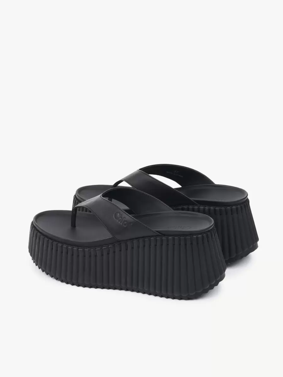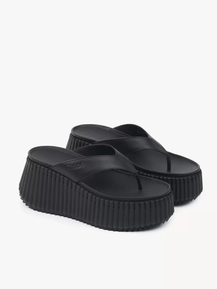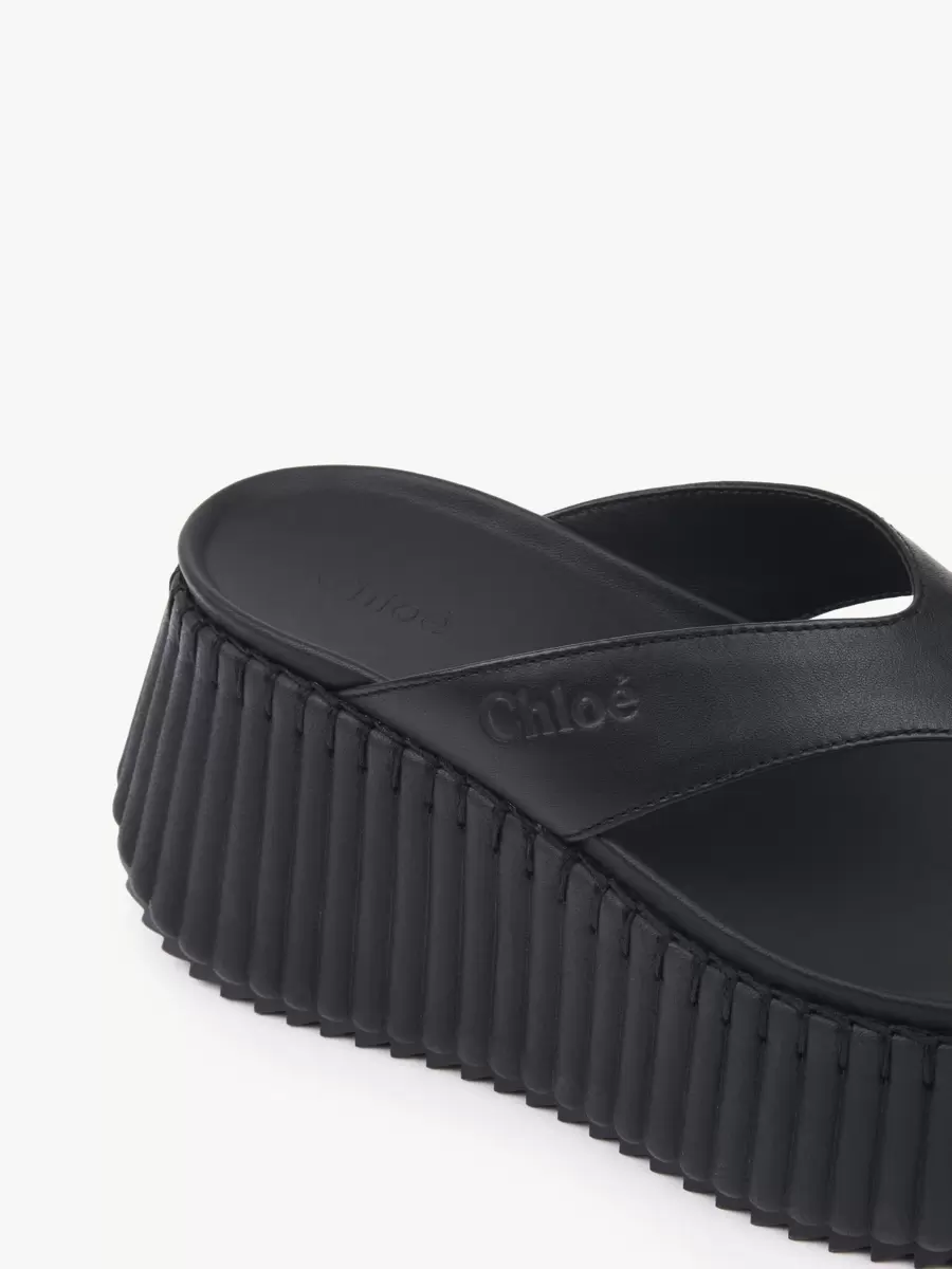 Crafted from calfskin, these Nama wedge slides feature a thong front debossed with the Chloé logo. They are set on an iconic, lightweight and ultra-comfortable recycled platform, finished with immaculate tonal blanket stitching which takes 4.5 hours to complete by hand.