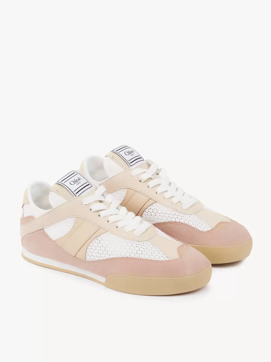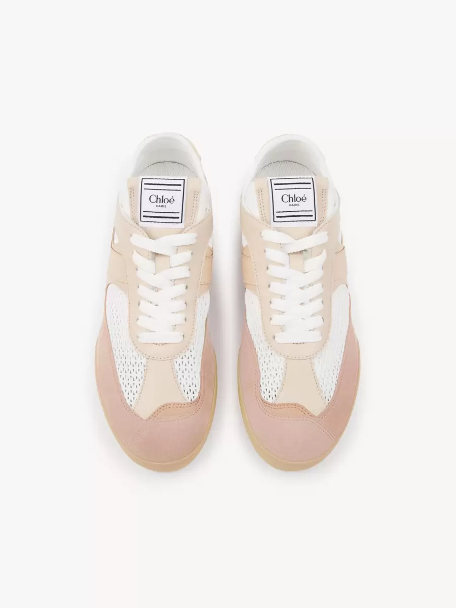 Inspired by the ballet and boxing worlds, these Chloé Kick sneakers are crafted from recycled mesh and a mix of smooth and suede calfskin.