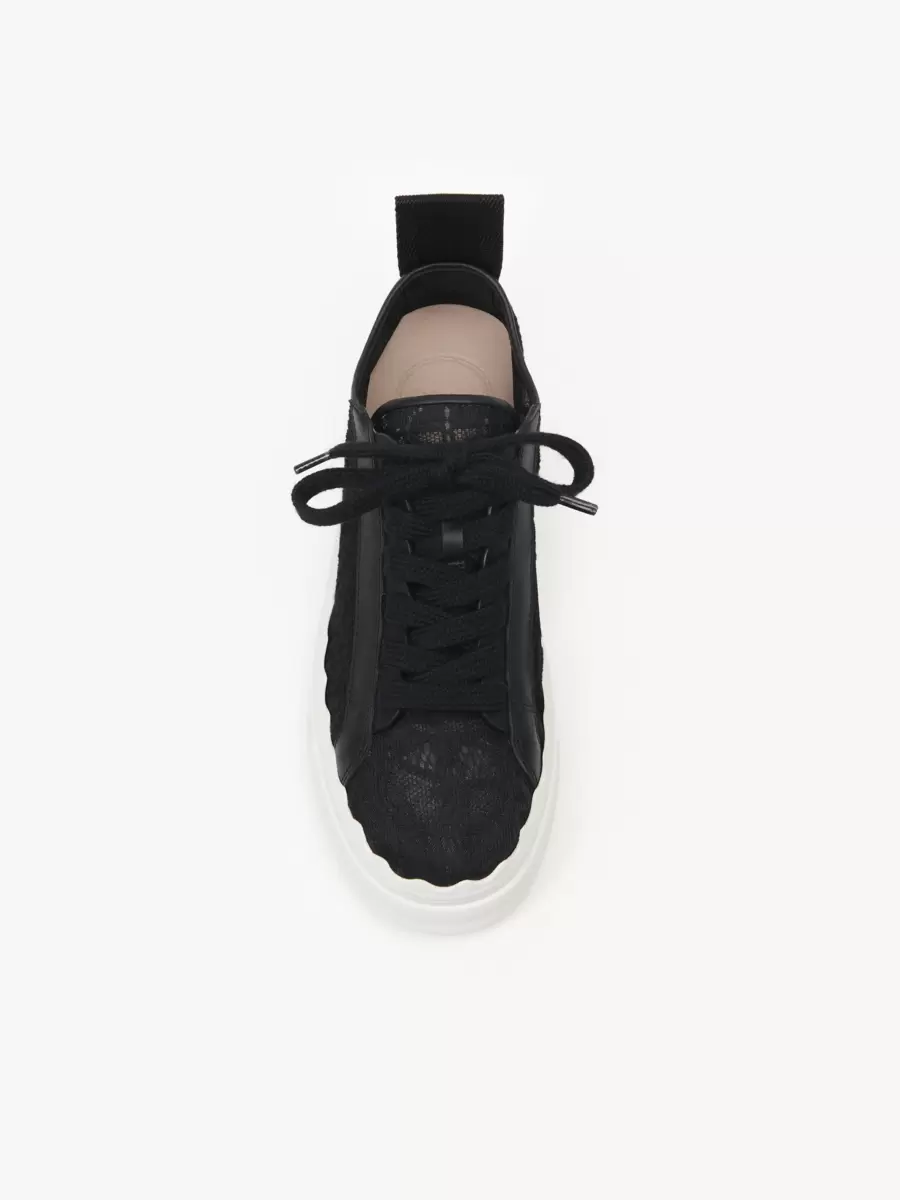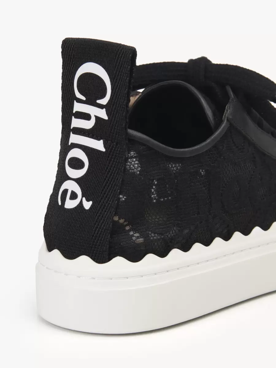 The Lauren family’s active daywear option, this lace-up sneaker is cut from soft and delicate lace from the ready-to-wear collection and lined with mesh for transparency.