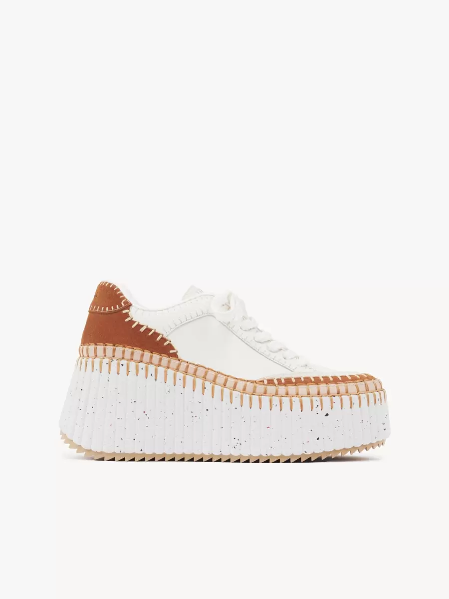 Crafted from smooth and suede cowhide, these Nama wedge sneakers are set on an iconic, lightweight and ultra-comfortable recycled sole with a speckled effect. They are finished with immaculate blanket stitching which takes 4.5 hours to complete by hand. An embroidered Chloé logo signs the tongue while a debossed logo finishes the back.