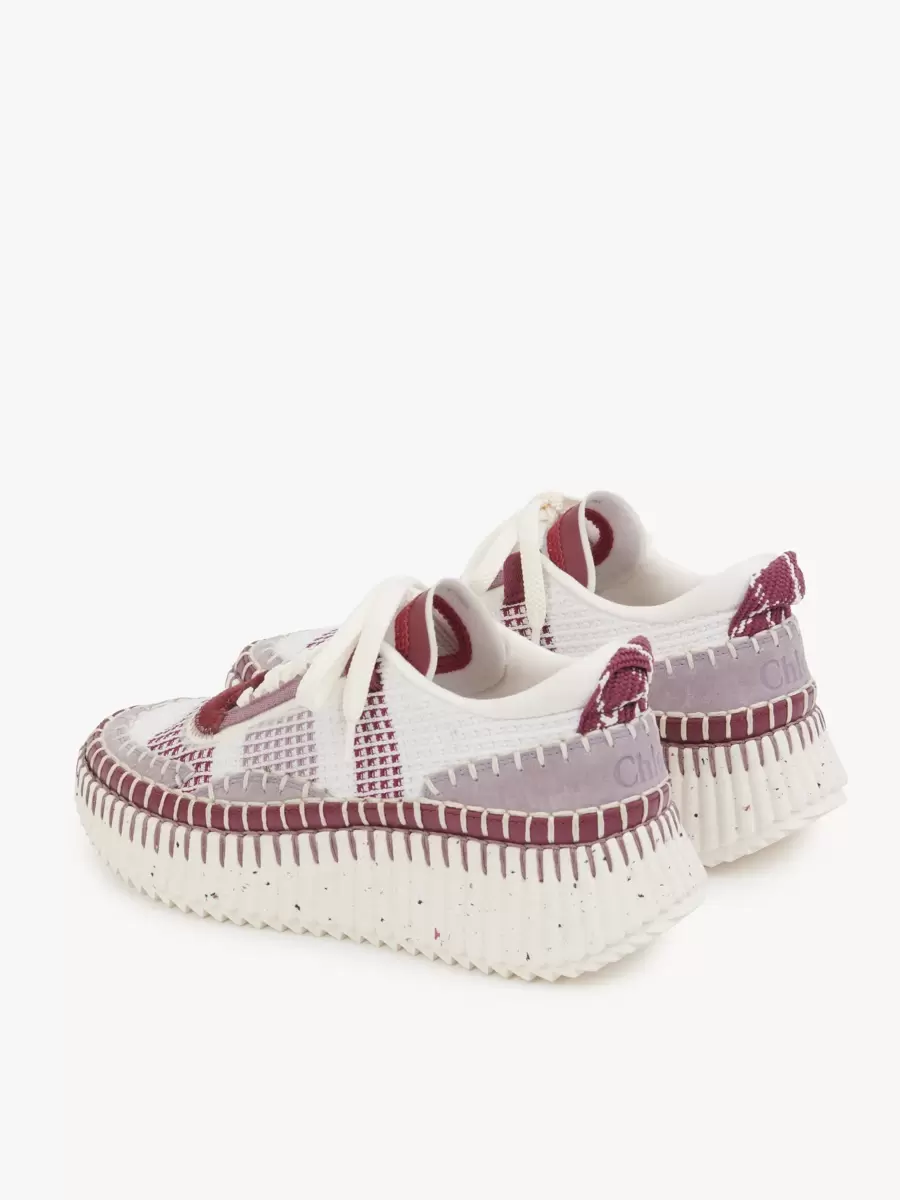 The Nama sneakers are crafted from recycled materials in a mix of contrasting colors and textures. These sneakers are set on an iconic, lightweight and ultra-comfortable sole with a speckled effect, and finished with immaculate blanket stitching which takes 4.5 hours to complete by hand. The Chloé logo signs the back.