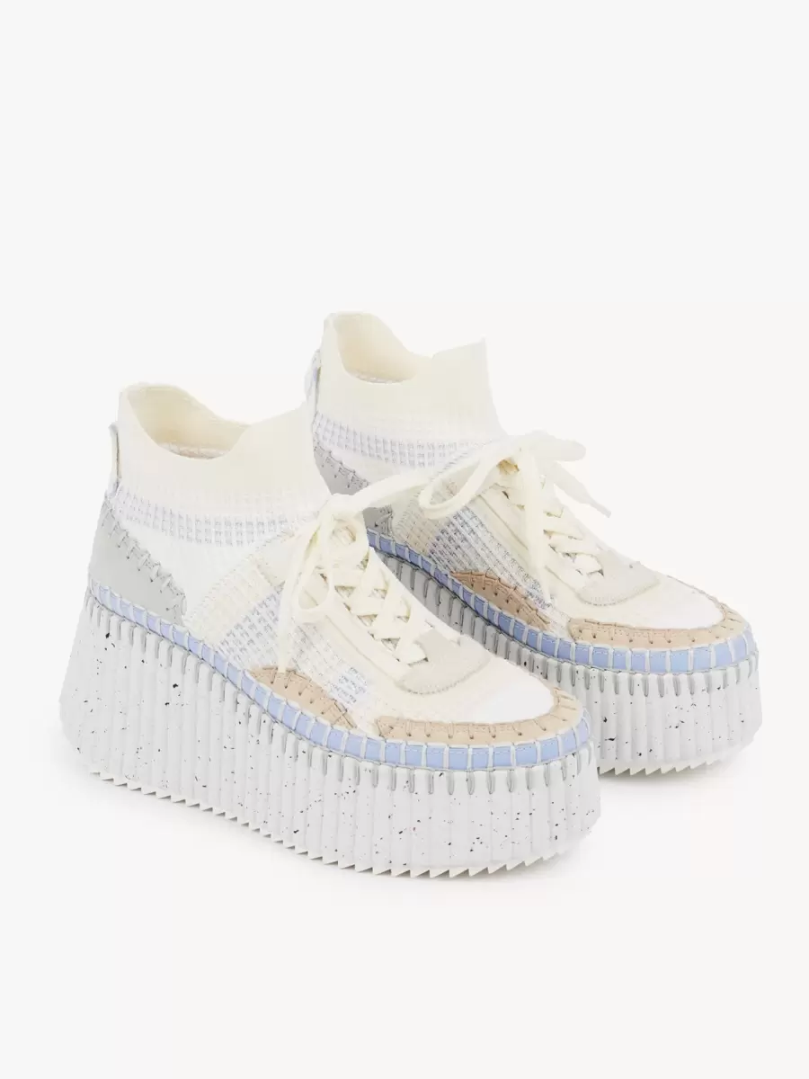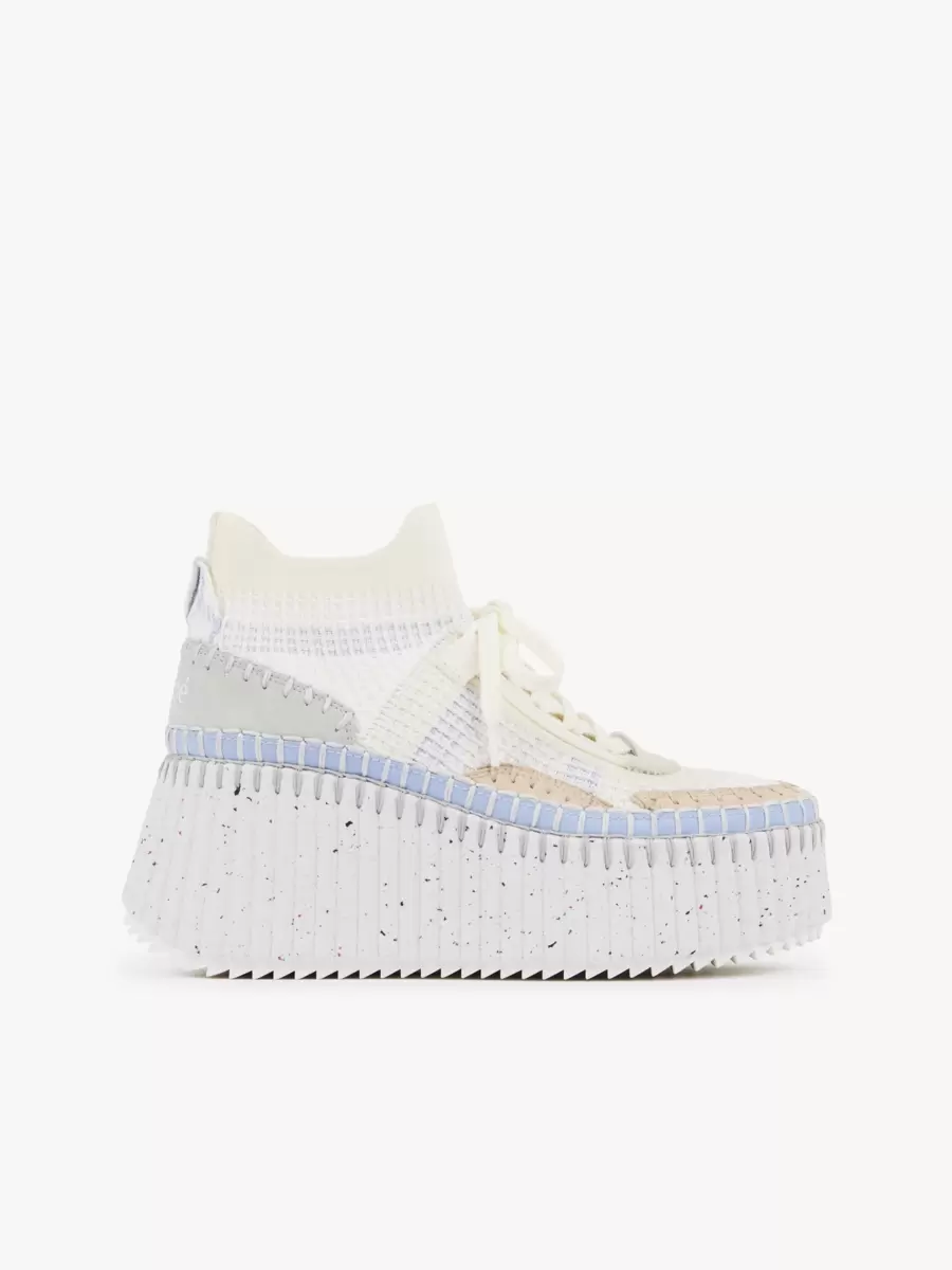 From the Maison’s iconic Nama line, these eco-designed wedge sneakers are crafted from a mix of lower-impact materials with a recycled sole. This revisited shape features a slip-on sock upper for a comfortable fit.